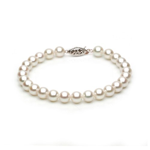 Buy Now 14k Yellow Gold 6-6.5mm White Akoya Saltwater Cultured Pearl Bracelet AA+ Quality, 7 Inch