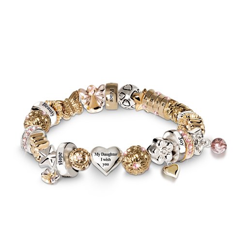 For Sale Heartfelt Wishes Swarovski Crystal Daughter Charm Bracelet: My Daughter I Wish You by The Bradford Exchange